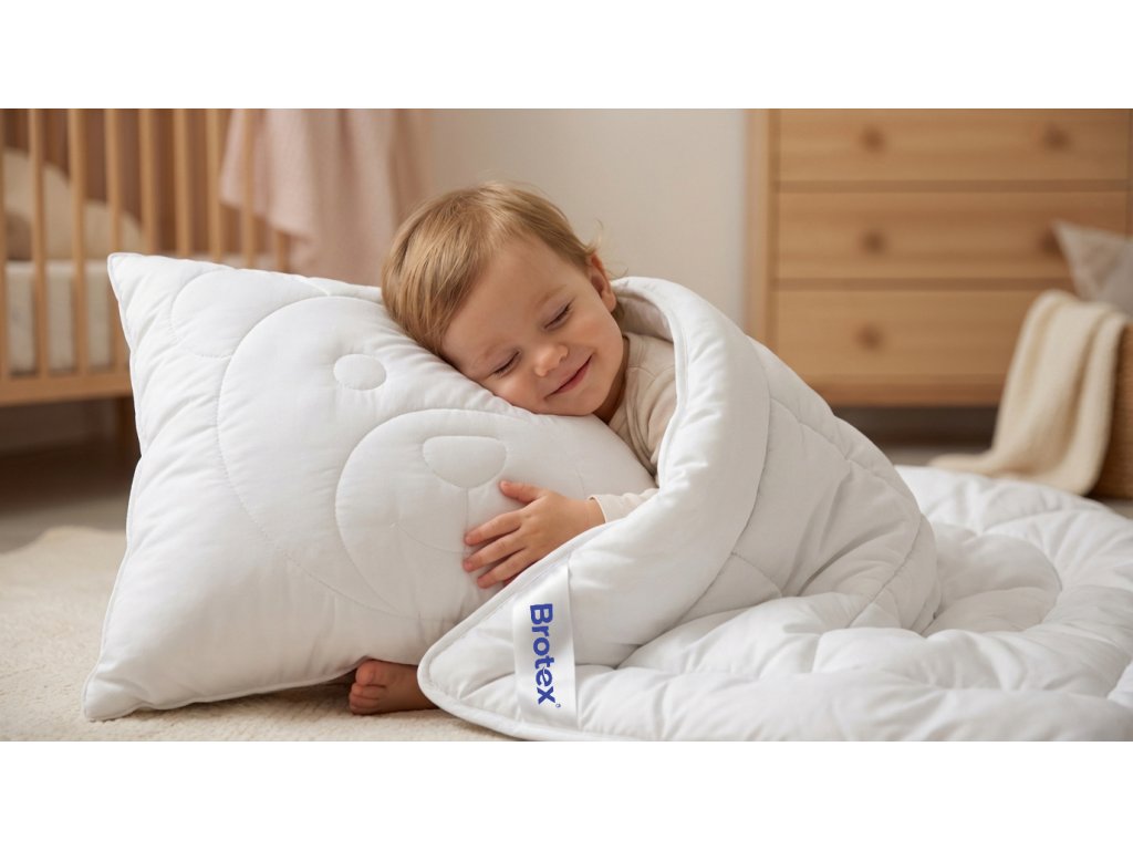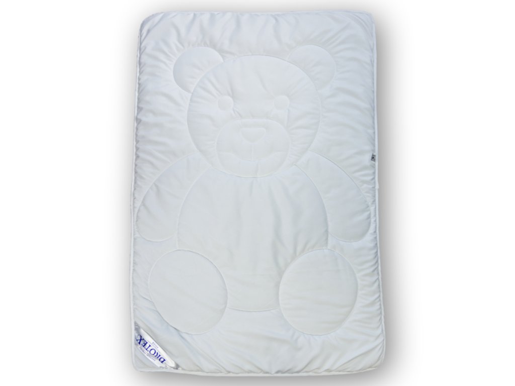Táto ľahká a nadýchaná detská sada - prikrývka a vankúš - je ideálnou voľbou pre citlivé deti aj malých alergikov. Výplň z kvalitného dutého polyesterového vlákna zaisťuje výbornú priedušnosť, optimálny tepelný komfort a zároveň vysokú hygienu. Duté vlákno drží tvar, rýchlo schne a nepohlcuje prach ani roztoče. Originálne prešitie s motívom medvedíka dodáva vankúšiku aj prikrývke hravý a prívetivý vzhľad, ktorý poteší každé dieťa a spríjemní mu zaspávanie. Výhody: vhodné pre alergikov a astmatikov, jemný, príjemný povrch šetrný k detskej pokožke, ľahká, mäkká a dobre hrejivá prikrývka, vankúš s pevnejším, ale stále jemným objemom, ľahká údržba – možno prať v práčke na vyššiu teplotu, duté vlákno s dlhou životnosťou a stálym objemom izbička Táto sada je skvelou voľbou pre každodenný pohodlný spánok a maximálnu hygienu. Hodí sa ako do postieľky, tak do detskej izbičky v škôlke či na cesty.Dodatočné parametre